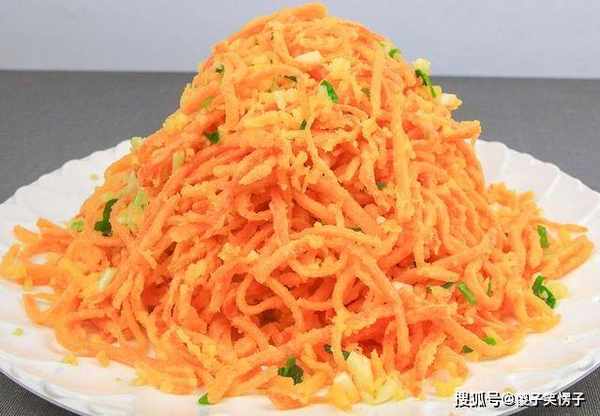 4.好了,这道清淡美味的蒸胡萝卜丝就做好了。