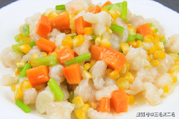 放入虾仁玉米快速翻炒半分钟,就可以出锅装盘了。