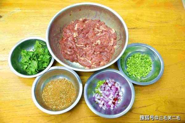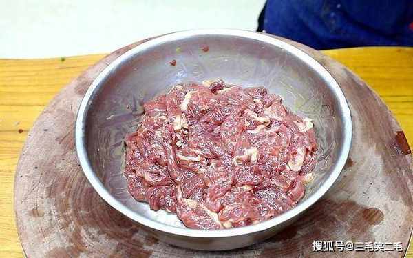 准备羊肉500克,切成均匀薄片放入盆中,加入食盐2克,胡椒粉2克,料酒10克去腥膻味,生抽5克,抓拌摔打一分钟,让羊肉吸收料汁入味 。