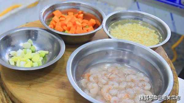 胡萝卜半个,削去外皮,切成胡萝卜丁。