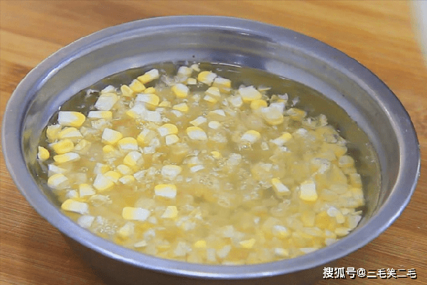 加入凉水,放入食盐2克浸泡,玉米皮会自动飘起来。