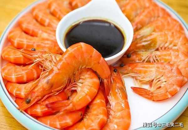 3.闻到浓郁的葱香味以后把鲜虾倒入锅中,下锅以后不需要煮太久,开锅以后再停留个三四秒钟即可倒出,切记要放任何调料,尤其是食盐,盐水煮虾容易流失水分,导致虾肉不够滑嫩,最后把葱段和姜片挑出来,把大虾均匀摆放在盘中。