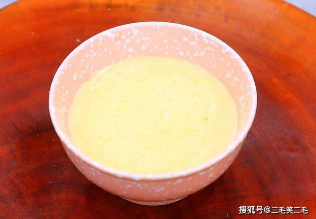 1.在碗中打入三个鸡蛋,加入少许食盐入味,淋入一点芝麻香油,用筷子搅散,再倒入300毫升的纯牛奶,搅拌均匀备用。牛奶和鸡蛋液的比例是2:1,这样蒸出来的蛋羹比较细嫩。