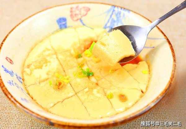 4.12分钟以后,把蛋羹取出来切成均匀小块,淋上适量的蒸鱼豉油,撒上葱花,美味即成。