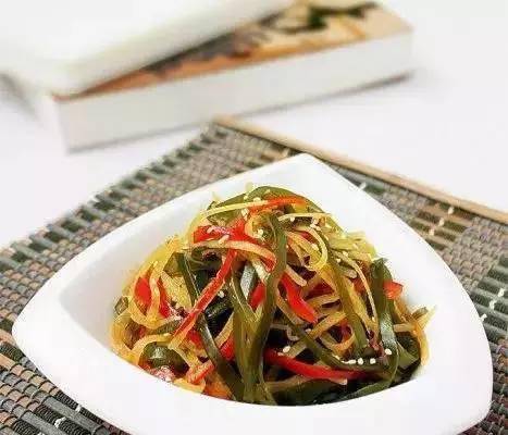 1. 红椒切丝,土豆洗净去皮后切成丝,放入沸水锅中焯熟,干海带丝用水泡开洗净,放入沸水锅中焯熟;