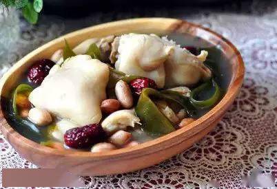 原料:猪蹄、鲜海带、花生、大枣、生姜、香葱、盐、糖、胡椒粉、料酒、清水