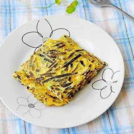 1. 海带丝冲洗后放锅内煮2分钟捞出,海带切段,长短自定。香葱切碎,鸡蛋磕入碗内,放入海带、香葱、盐和胡椒粉,搅拌成鸡蛋液;