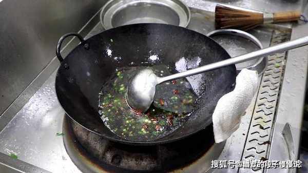 8.接下来我们开始烹饪,锅内烧油,抓入几粒青麻椒和几粒干辣椒,炒香以后,倒入葱花和姜末,加入小半锅清水,加入生抽提鲜,再加入2滴老抽提色。