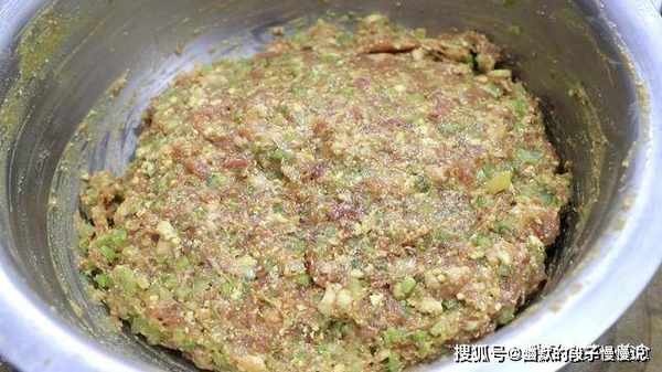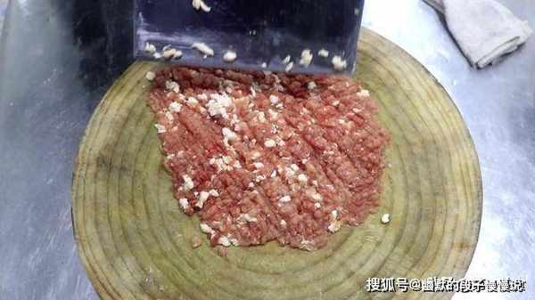 1.首先我们准备一下食材,猪肉一块,先切成片,再剁成肉末,剁出来的肉末更有筋性,剁好以后放在盆中。