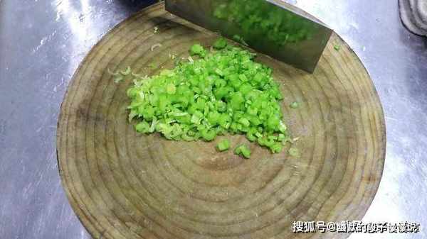 清洗干净的芹菜一小把切成细小颗粒,放在盆中备用。
