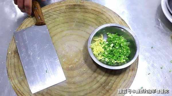 4.小葱一小把,切成小葱花放在盆中,生姜一小块拍扁以后切成姜末,和小葱放在一起。