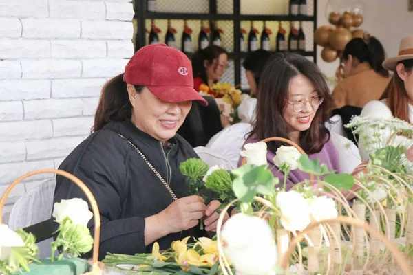 在小酌微醺的气氛下,植盒精油调香师、慧润职业培训学校的花艺师带领大家通过精油diy及插花等艺术形式,完成女性自我对美的表达:自己去做,亲身体验,突破自我,享受其中的快乐。