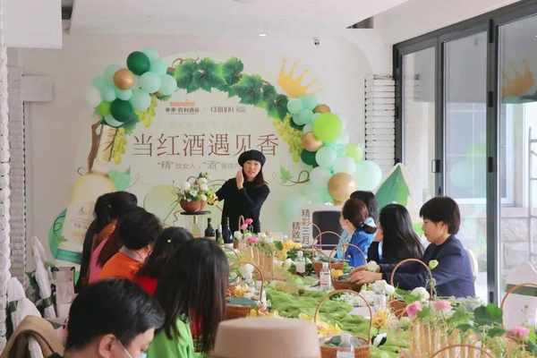 活动包含华东高端葡萄酒品鉴、晶石香薰DIY、插花艺术三个环节。华东葡萄酒品鉴环节由品酒师带领女神们从清新的白葡萄汁到离葡萄最近的2022新酒莎当妮干白葡萄酒再到风味馥郁醇厚的西拉干红葡萄酒、马瑟兰干红葡萄酒。在时光旅途中经过不同加工的葡萄都展现出独特的风味,各有各的精彩。在品酒师声情并茂的讲解中,嘉宾们从舌尖到味蕾,品味葡萄人生,感受葡萄酒的魅力,华东系列产品获得一致好评。