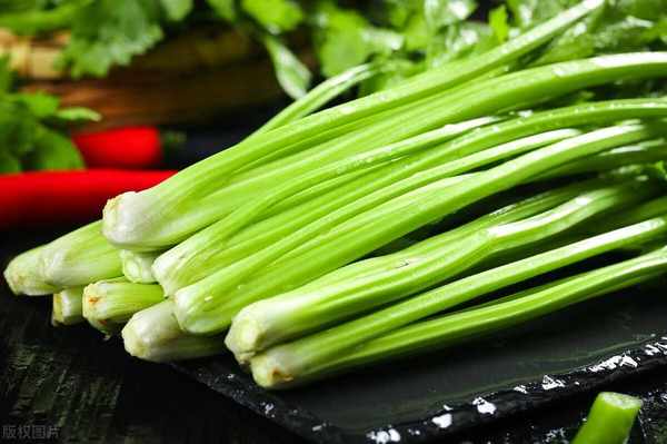 1.首先把芹菜准备好,去掉叶子,清洗干净,再切成两厘米左右的段。