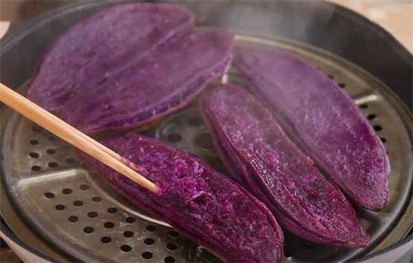 2.蒸了差不多有半个小时,这个紫薯已经完全熟透了。