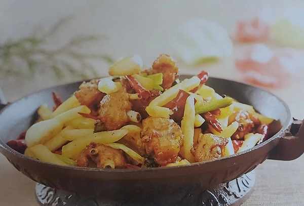 鸡翅200克、土豆条200克、干辣椒段10克