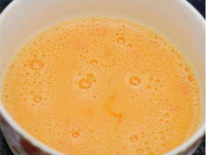 第四:锅中多放一些食用油,等待油温慢慢变热,滑入一些鸡蛋液,蛋液慢慢凝固,用锅铲快速翻炒均匀,装在容器之中。