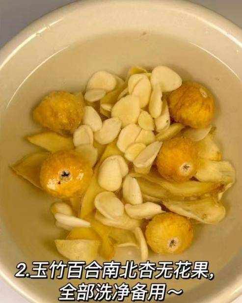 步骤3:提前将玉竹,南北杏,无花果全部洗干净,无花果可以用温水泡发,几个蜜枣洗净去核,准备好一些炖汤的食材,开始烹饪这道苹果雪梨无花果排骨汤吧。