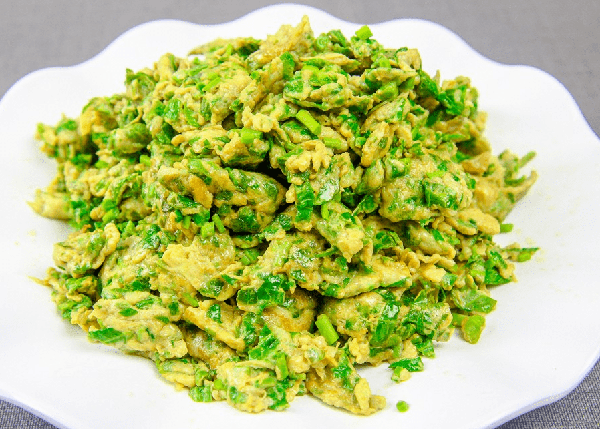 香椿清洗干净,然后将其切碎,准备好之后就可以打蛋,然后开炒了。炒锅里面放入适量的油,油热之后放入蛋液将蛋液炒匀,然后拿出铲子将其抄成碎丁,接着盛出,碗中备用。依然是炒锅里面放入适量的油热之后,放入辣椒圈一起去爆炒,炒出辣味和香味之后放入香椿翻炒,将香椿炒收汁后放入鸡蛋搅拌均匀,这道菜就算是做好了,大家可以看一下,颜值还是很高的!