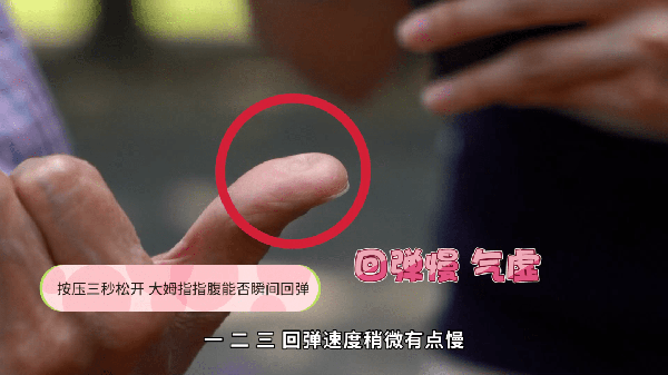 第三步:再观察其恢复的速度,如果在1秒内没有迅速恢复,就证明身体可能存在气虚的情况。