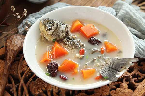 【食材】:鲫鱼 1条,生姜 3片,葱花 少许,木瓜 1个,食盐 1小勺、红枣 8个、枸杞 1把、