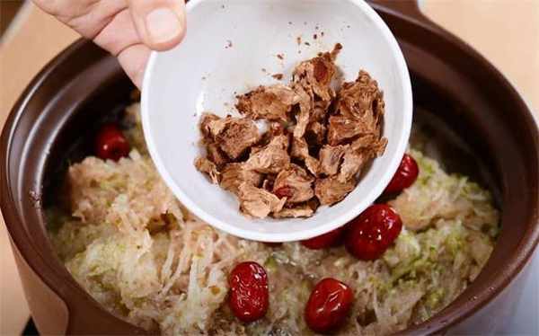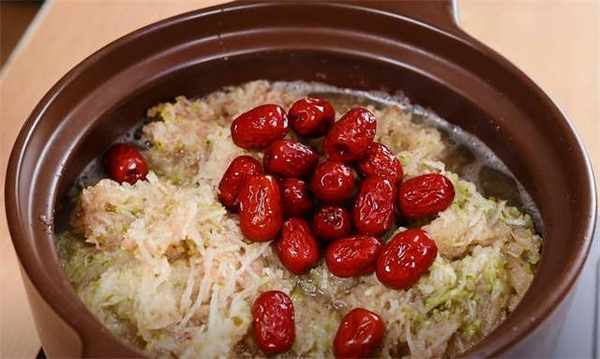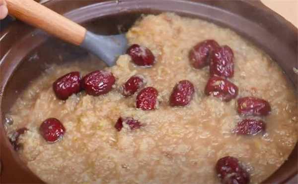 3.然后倒进锅里,添加50g的红枣。