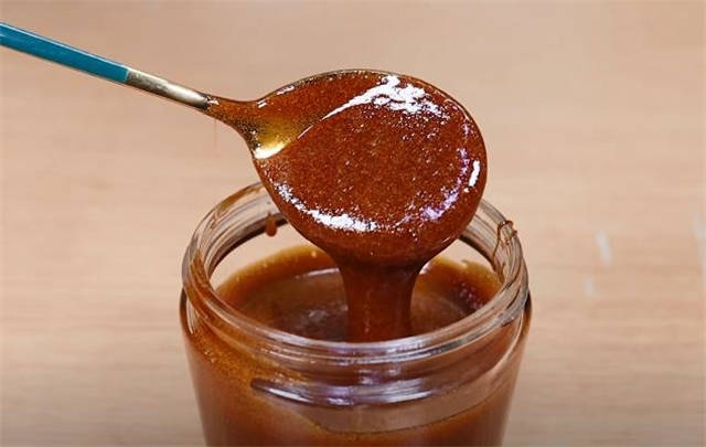 9.熬秋梨膏的时间大概在2-3个小时左右,最后一直到颜色加深又特别粘稠的程度就可以出锅了。