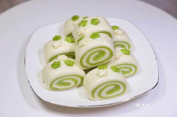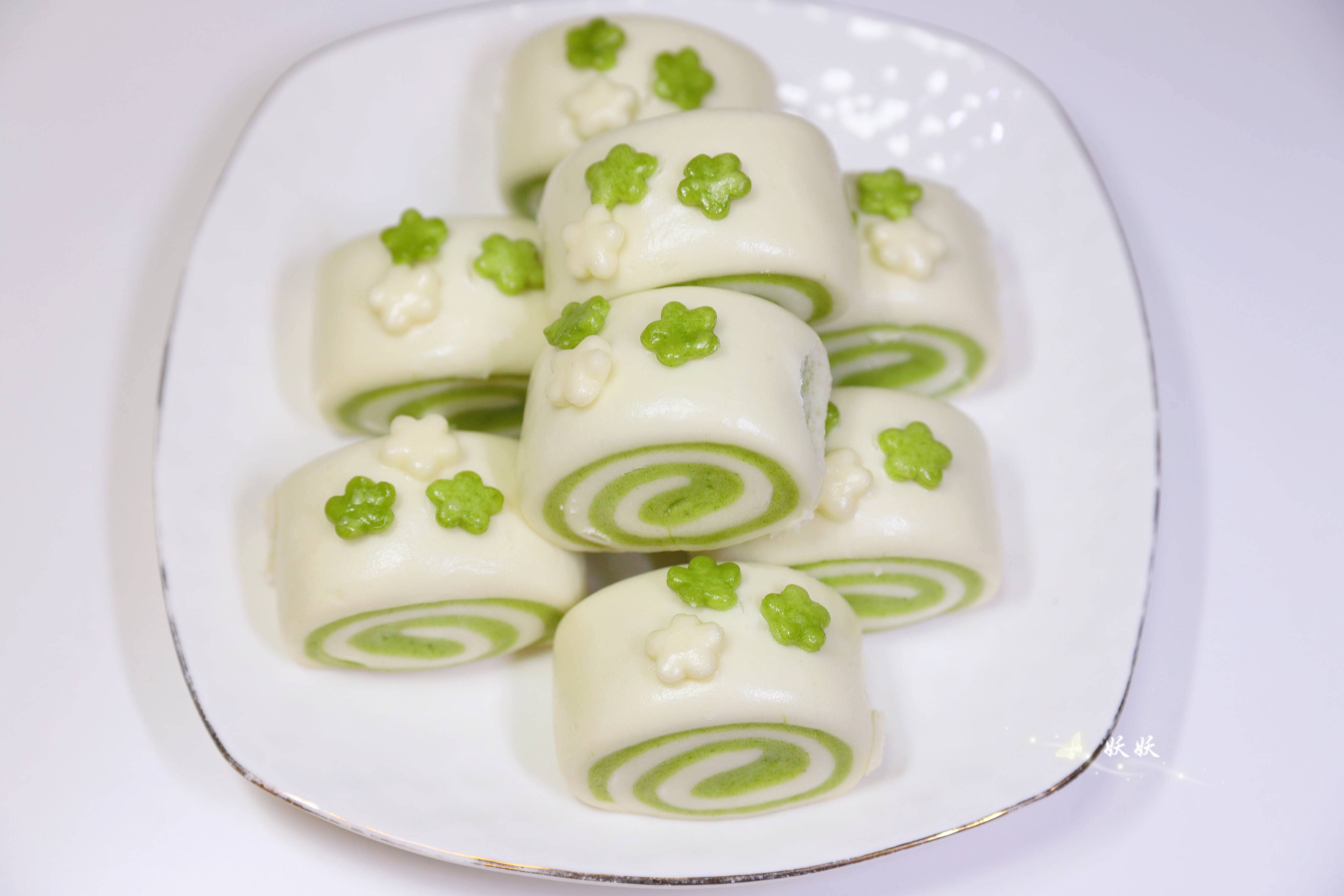 菠菜面团用料:菠菜汁75克,油5克,白砂糖5克,酵母粉1.5克,面粉150克。