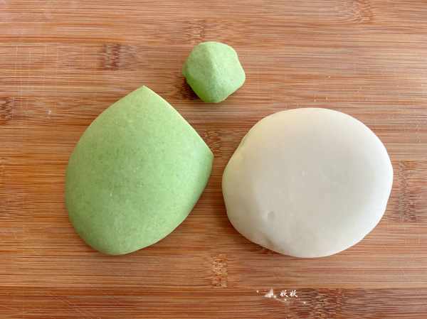 2,用同样的方法,再和出一块白色面团,两块面团都可以扯一点出来做装饰用。