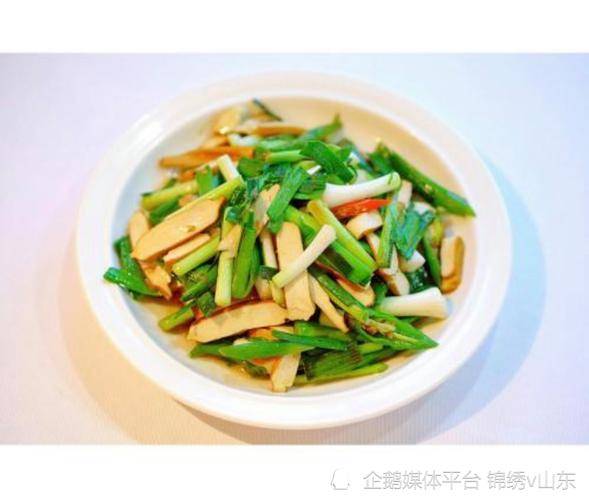 食材:蒜黄350克、香干100克、辣椒3个、盐一小勺,鸡精少许