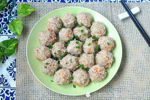 食材准备:前腿猪肉、胡萝卜、莲藕、葱花、小米辣、蒜末、葱姜水。