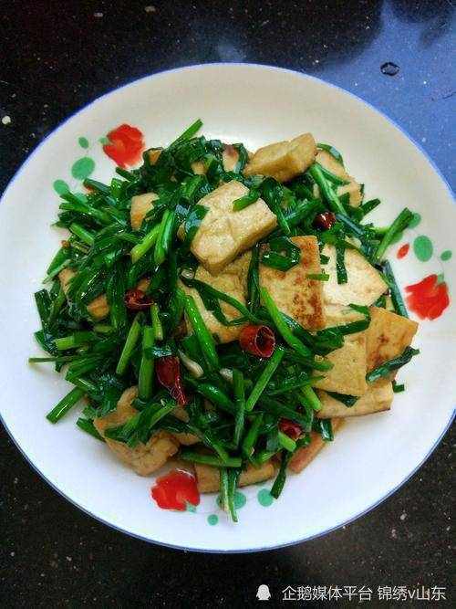 韭菜一把)、油豆腐3块、干辣椒8颗、蒜米6粒、味极鲜一勺、食盐1勺。