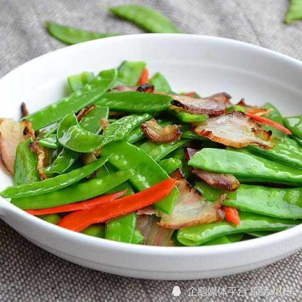 食材:荷兰豆半斤,腊肉200克,生姜少量。