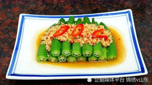 食材:秋葵、蒜蓉酱、生抽、盐、食用油、葱花。