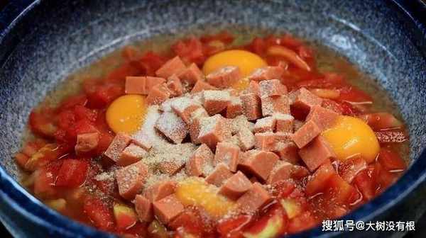 主要食材:3个番茄、4个鸡蛋、5块钱猪肉