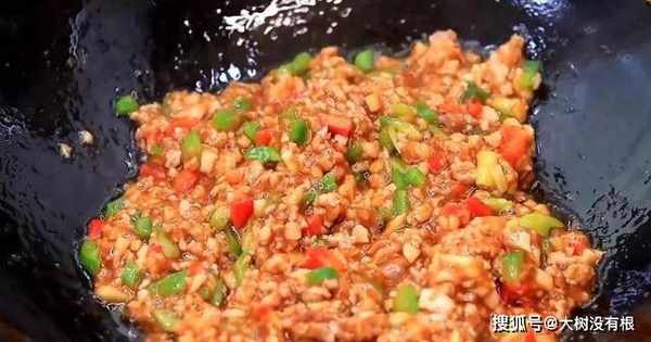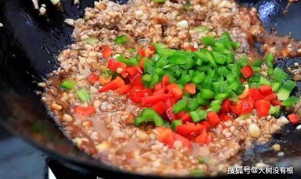 14、将肉末酱翻炒均匀,煮沸即可。