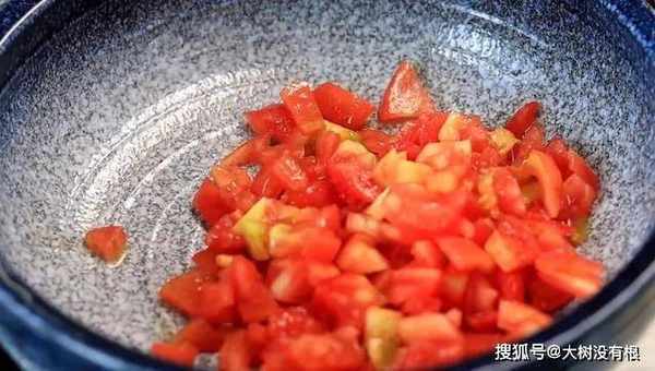 2、将番茄去皮,切碎备用。
