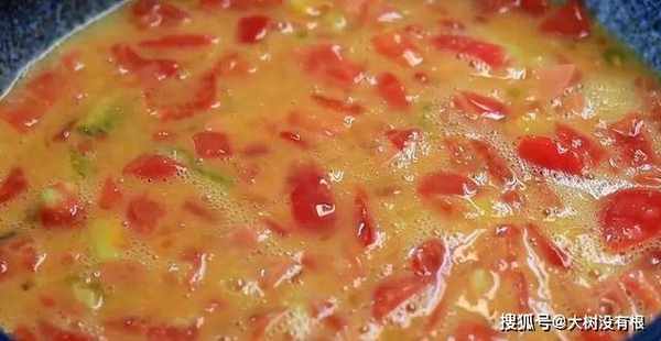 3、接着在番茄中放4个鸡蛋。