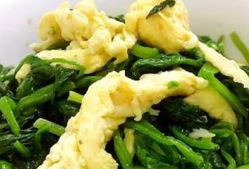 做法:①菠菜洗净后切段,放入开水中烫一下,捞出后用凉水浸一下备用;鸡蛋加盐在碗中打散。②炒锅置火上,将油烧热,倒人鸡蛋炒熟,盛出待用。③炒锅再烧热,放油,下葱末、姜末爆香,烹入料酒。④下菠菜、盐,煸炒至菠菜断生,然后放入炒好的鸡蛋,翻炒均匀。⑤加香油炒匀即可。