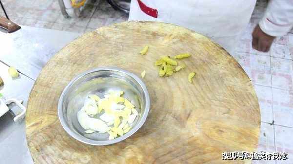 3.大蒜切成片,葱白切成马蹄片,生姜一块,切成薄片,泡椒几个,放在一起备用。