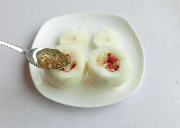 材料:秋梨2个、干银耳5克、干木耳5克、枸杞15粒