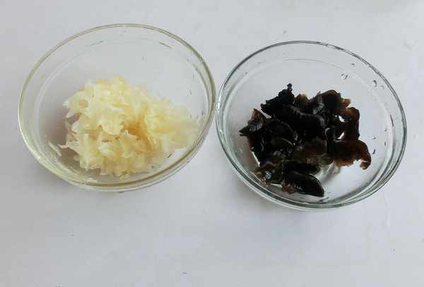 做法:1、银耳、木耳、枸杞分别泡开,木耳、银耳去根,择洗干净