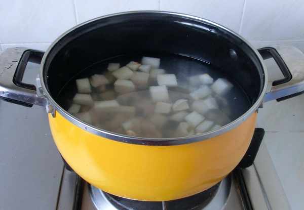3.大火煮开,小火煮15分钟,放入冰糖,煮化即可关火。