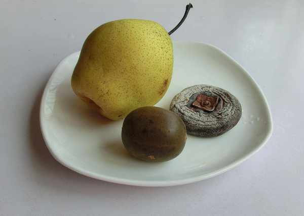 材料:罗汉果半个,雪梨1个,柿饼1个。