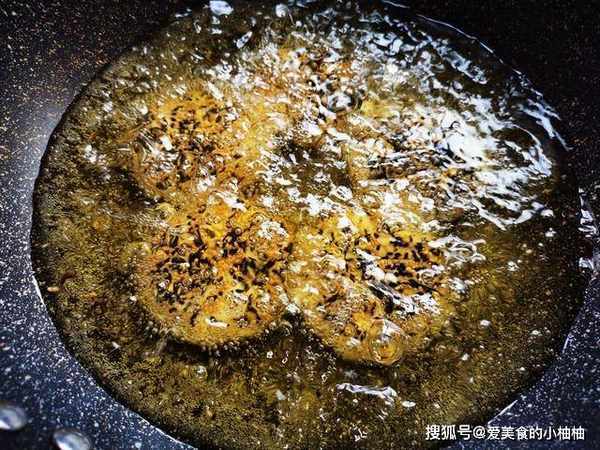 2、炸糯米芝麻饼不要心急哦,慢慢来,炸个3分钟左右就可以了。