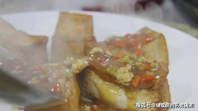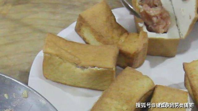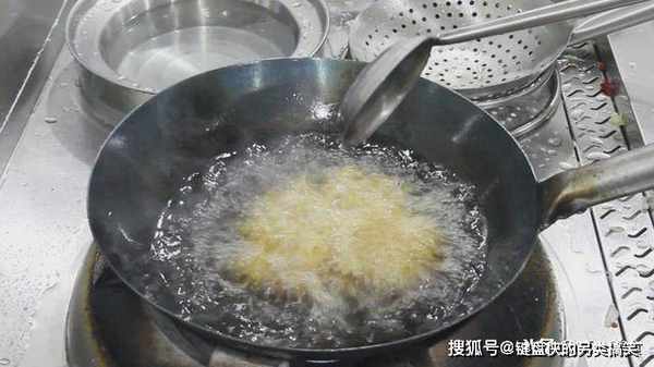 这个油温,比平时炸东西稍高一点,让豆腐的外皮快速变硬有韧性。