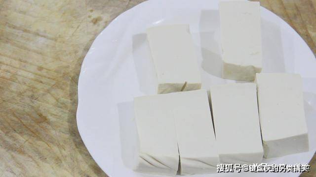 用刀细细切开豆腐上部的一个边,不要切透,这是盖子。