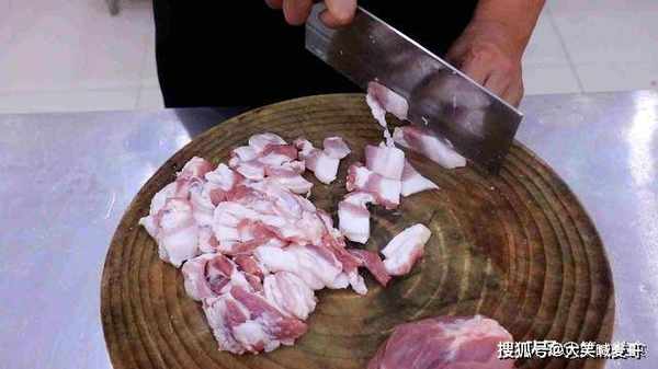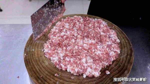 然后把五花肉和精瘦肉都切成薄片,掺在一起剁成肉粒,不要剁的太碎,没有嚼劲。