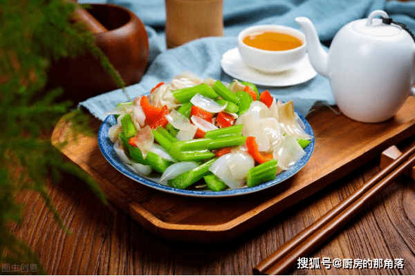 3、去掉芹菜的叶子,去取茎部,改成两厘米左右的斜片