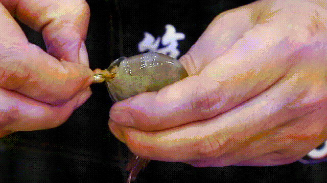 找准位置就可以轻轻揪出来,有了这一步3秒钟就可以处理一只虾,大大地提高了效率。